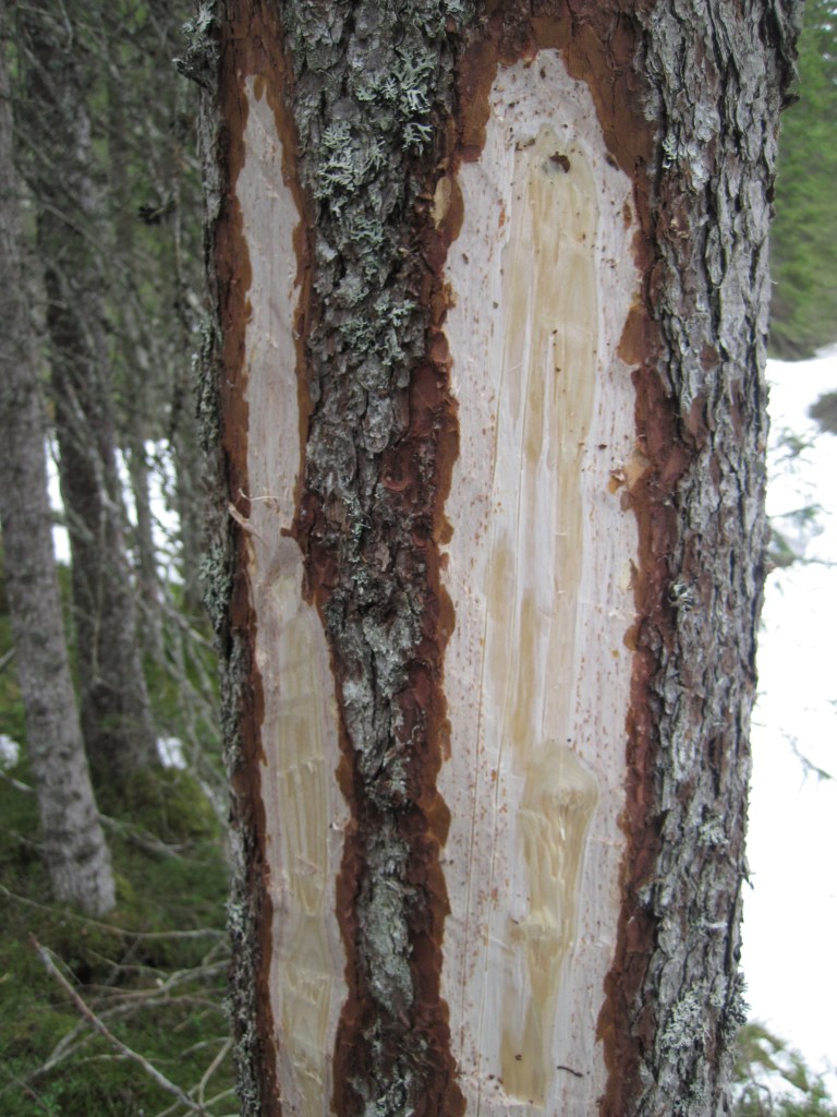Previous Image Next Image Prøving av vriding Ved å slinne av barken og prøve med knivspissen kan vi se om det er vridd eller rett vekst i grana.