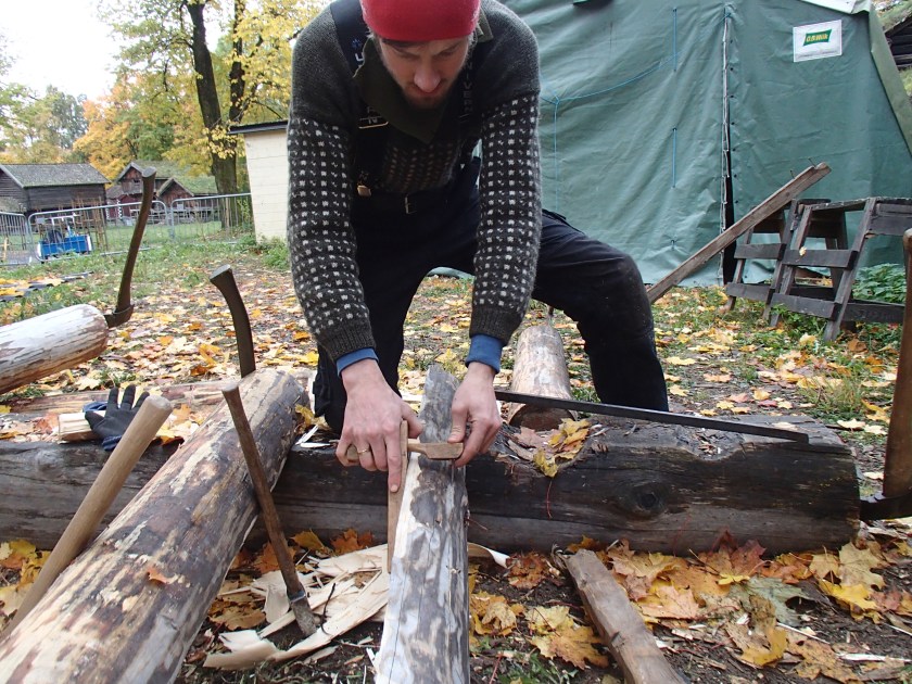 Først er ene sia, retta med øks, neste er kun overført med Tømmerriss. Jeg kunne brukt rett sotsnor, med denne beitskia skulle ha en svak bue for å passe i de gamle stokkendene. Foto.Henning Jensen