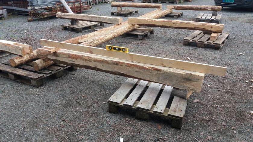 Vi brukte en avbindingsplass for å vinkle og vatre stavene og å få rett skreving. Feller øyrene ned i stavlegjå og feller ned neglinger og skråband. Vi borra og alle naglehull på avbindingsplassen.