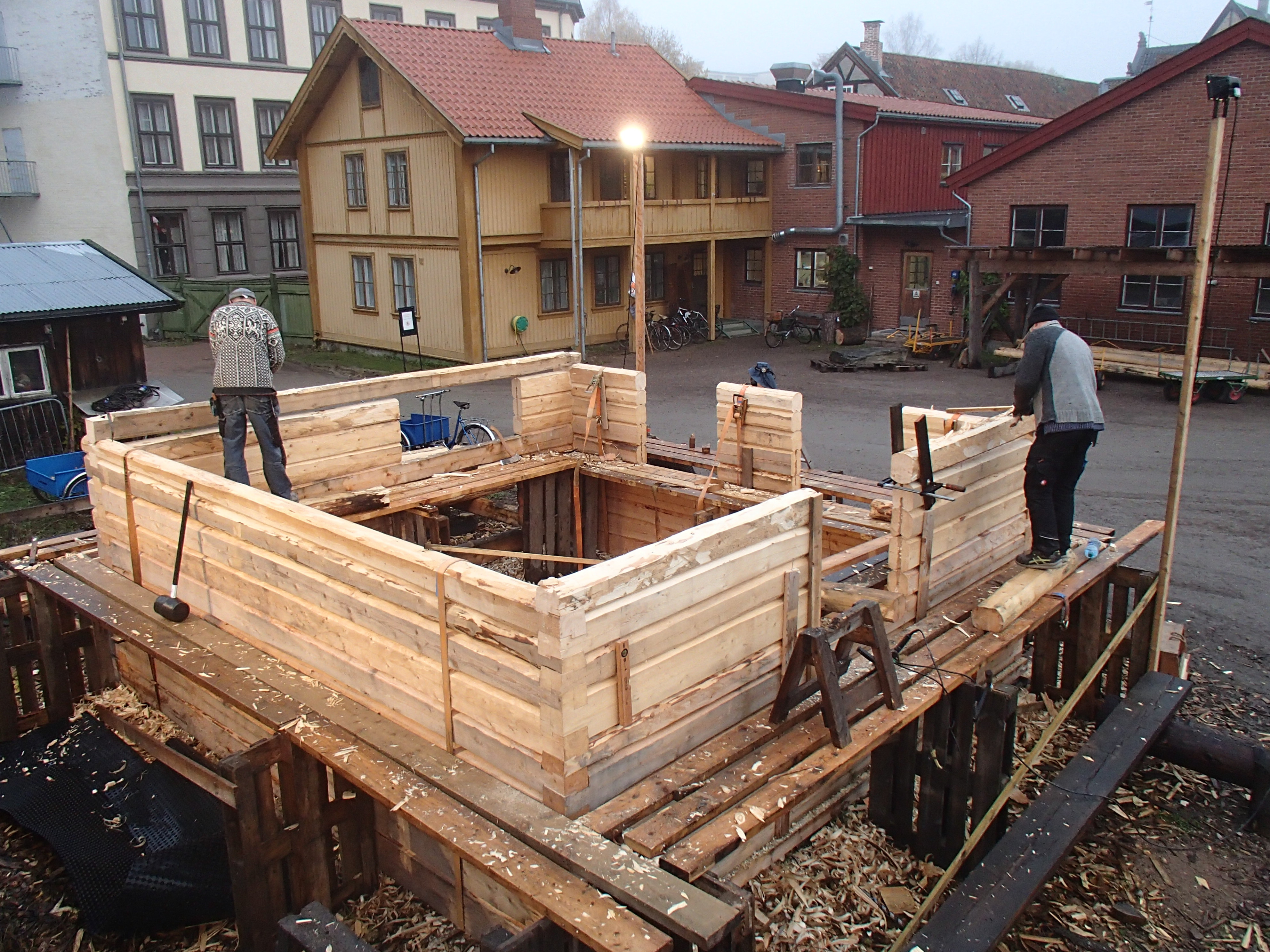 Previous Image Next Image OLYMPUS DIGITAL CAMERA Ivar Jørstad og Henning Jensen hogger til laftestokker. Foto: Magnus Wammen