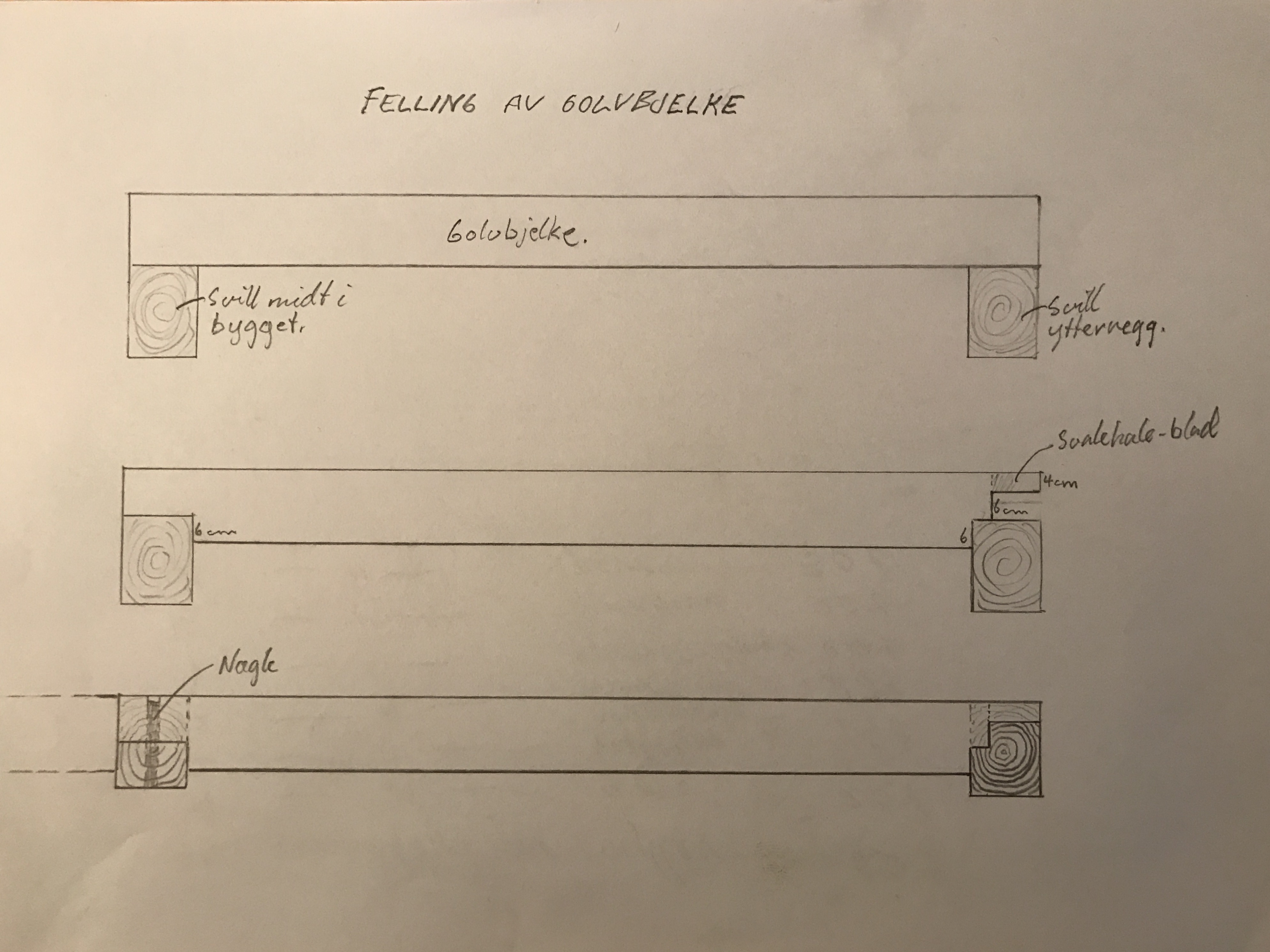 Felling av golvbjelkar med svalehale og berebryst