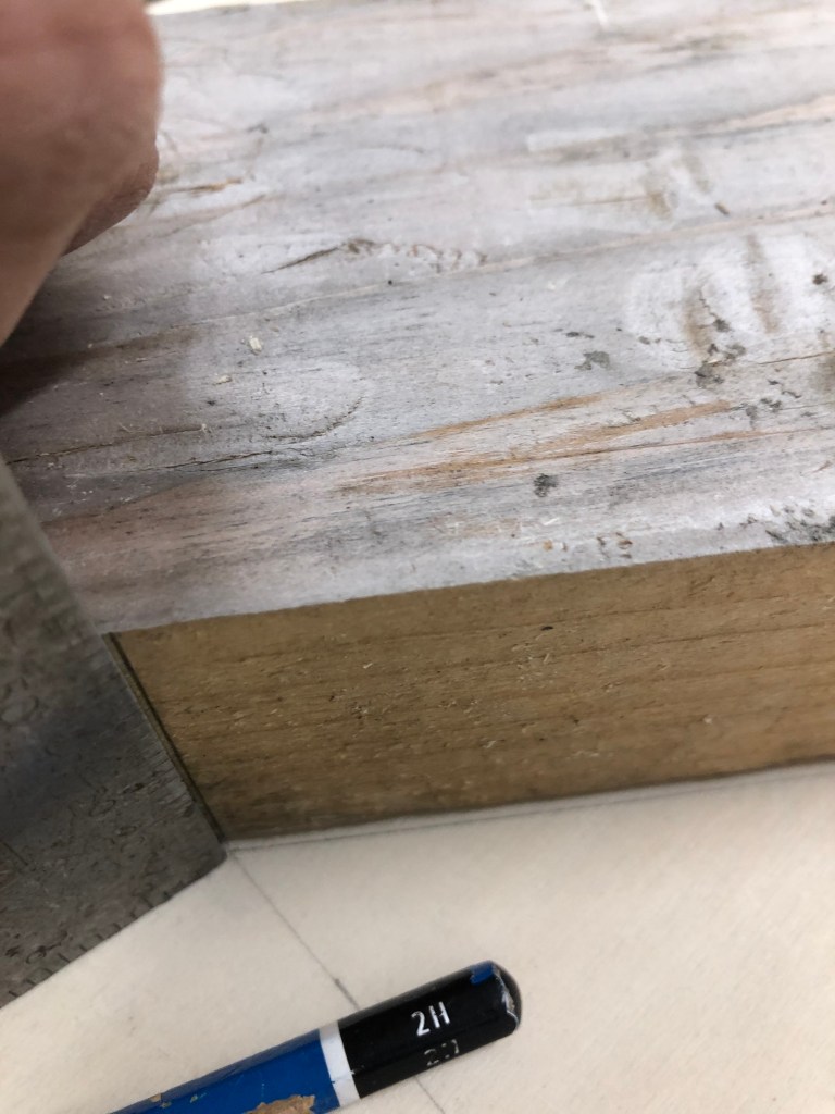 Previous Image IMG_1437 Anleggssperren legges på opprisset, Vinkel brukes for å overføre merkingen fra platen til emnet. Når all merking er utført tilvirkes sperren etter strekene som er avsatt.