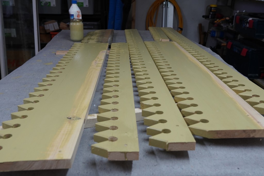 Alt av deler til tårnet skal grunnes og males med to strøk linoljemaling.
