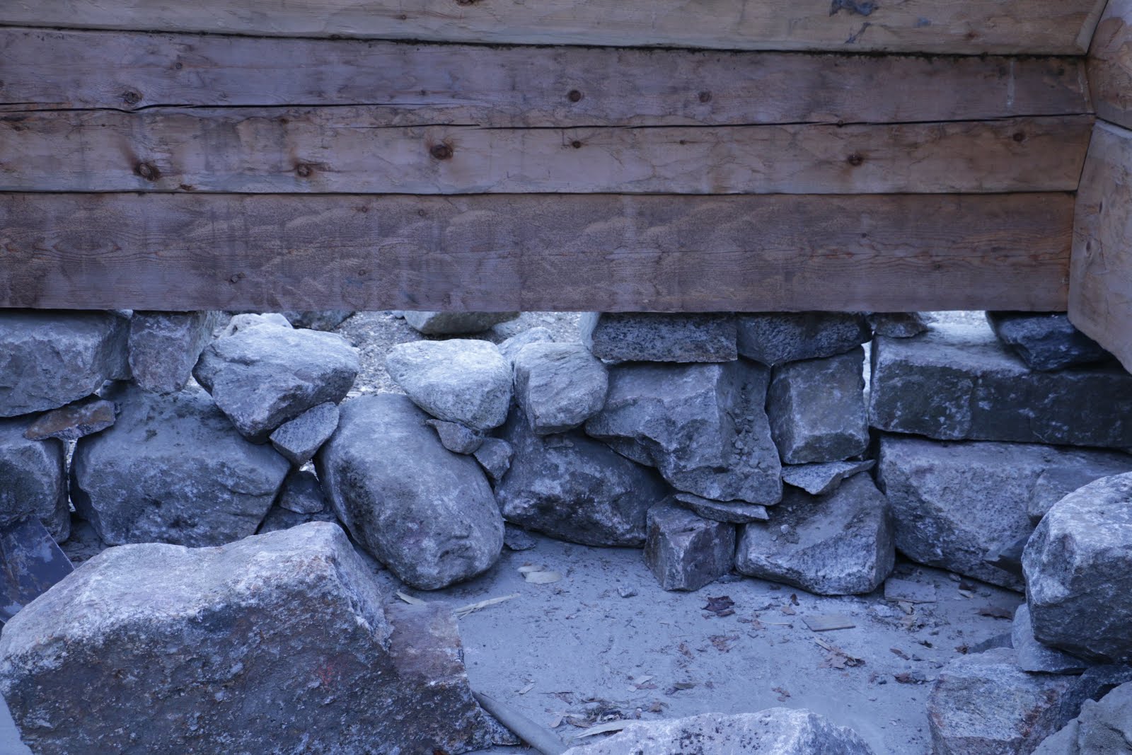 Previous Image Next Image 9 Baksiden av samme mur, legg merke til kilene under steinene, og at noen steiner ligger med langsiden inn (Foto: Henning Jensen).