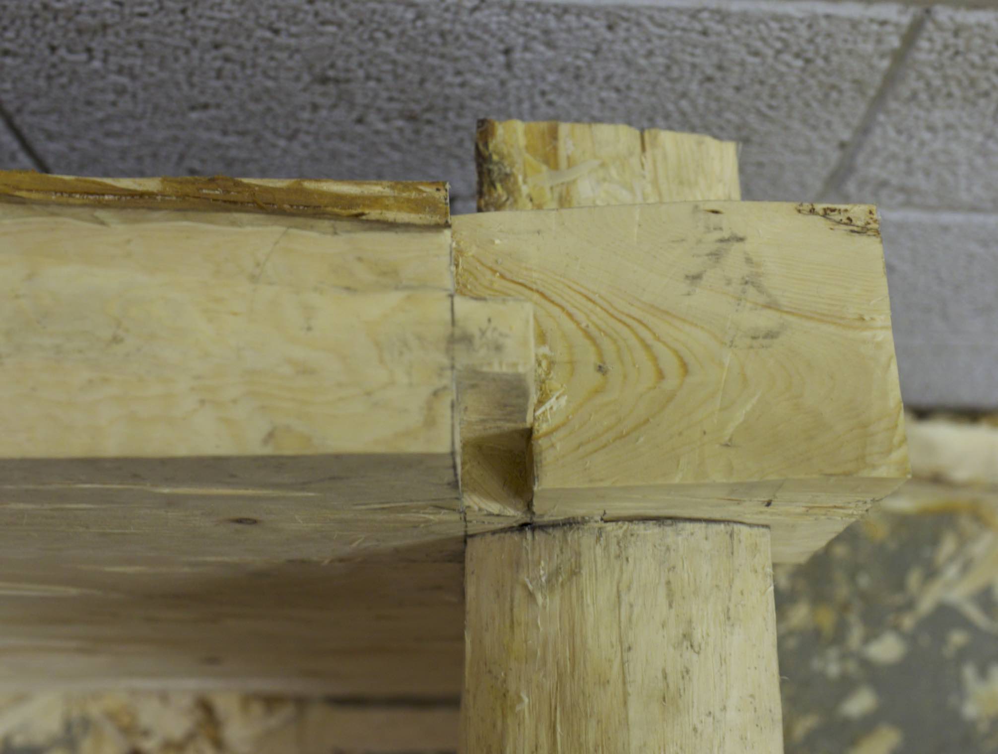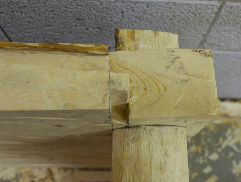 Previous Image Next Image Nov Sinknovene vi tømrar har tapp inn i understokken og sliss for tappen frå understokk frå møtande vegg. Foto: Roald Renmælmo
