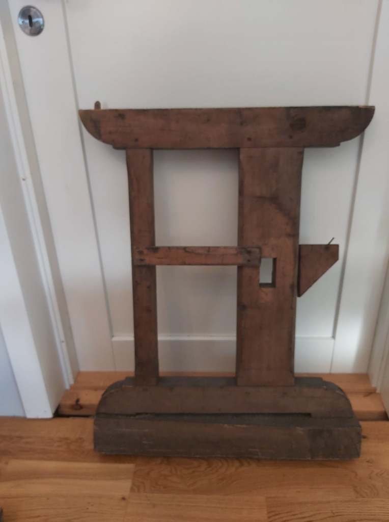 Det var også to føtter med, den ene smal til å stå bak og den andre bredere til å stå foran under L-tangen, slik at den ble stødig og god å jobbe på.