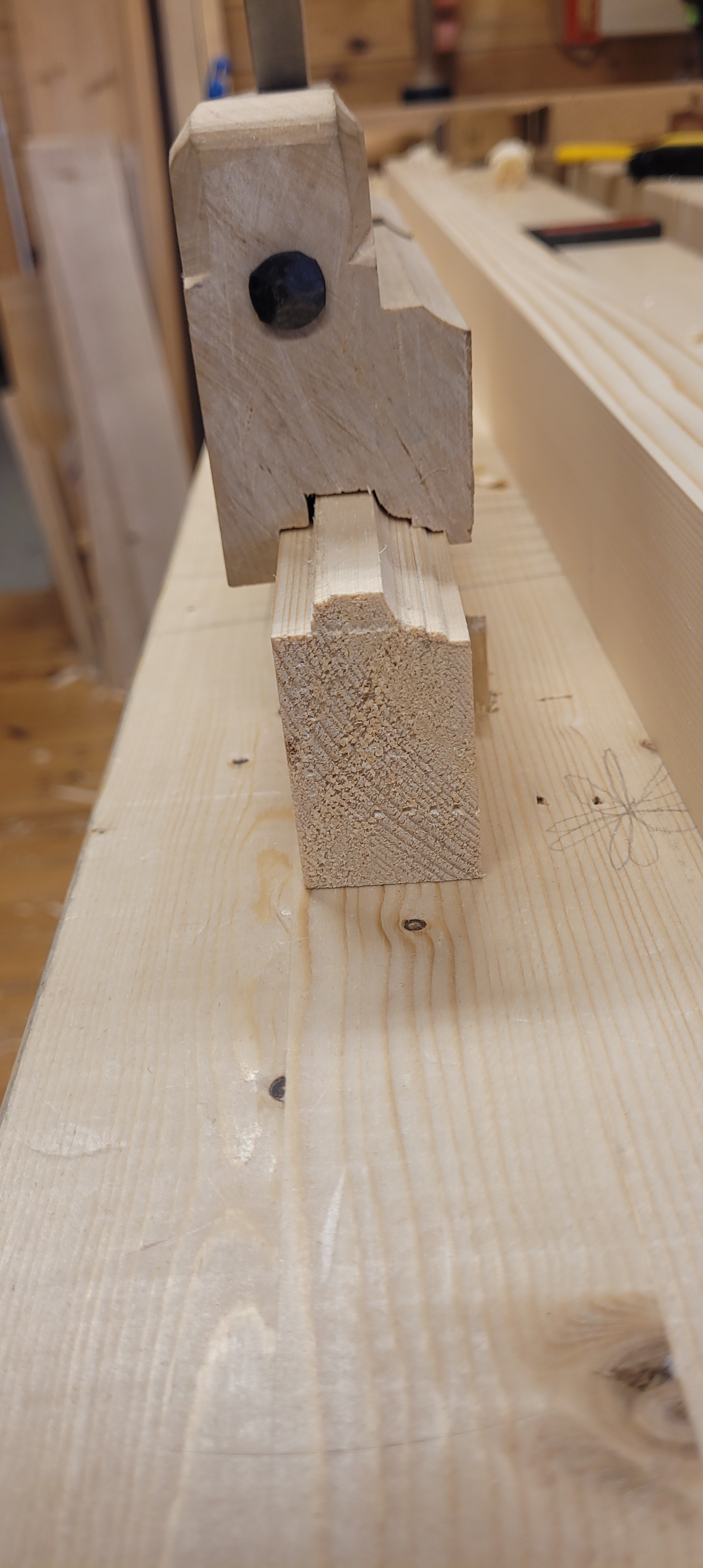 Til profilering på sprossene laget vi en seng til å legge delene i da vi trengte at de lå stabilt (kunne nok vært gjort bedre, men funket).