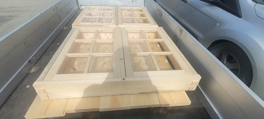 Vinduene er kittet ferdig og fraktet bort for mellomlagring. Vi veit ikke om vinduene skal males eller ikke. Vinduene er ikke hengslet pr nå da vi ikke veit om de skal være hengslet eller hvilket antall som eventuelt skal hengsles. Vi hadde heller ikke hengsler.