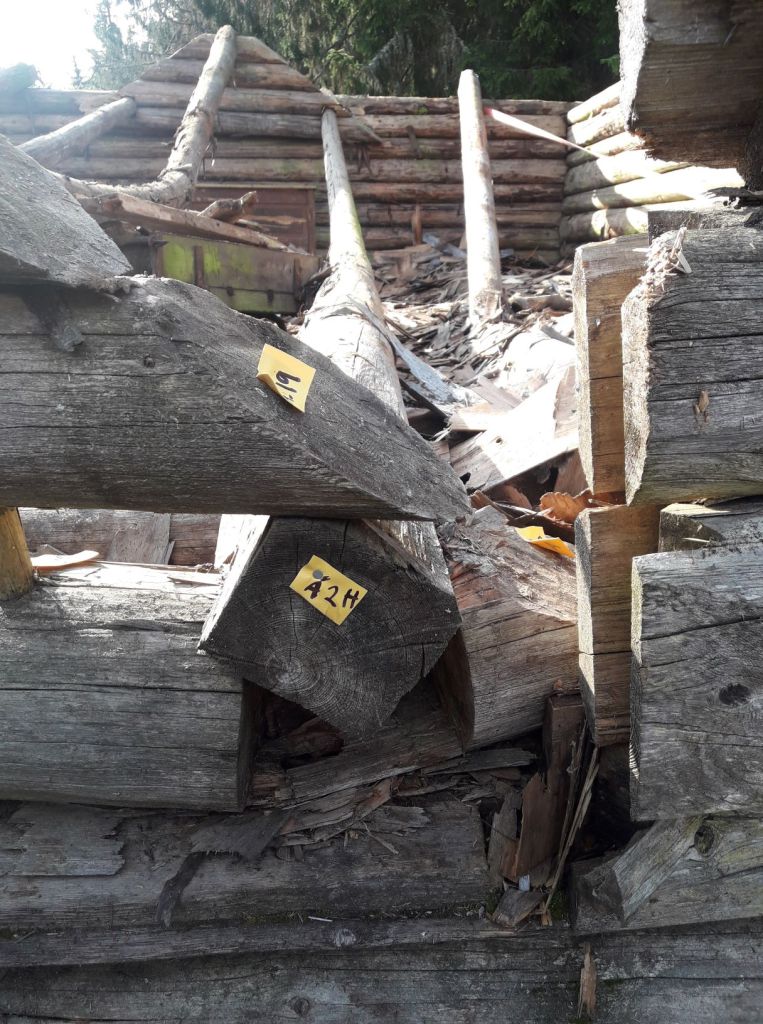Dokumentasjon, oppmerking og demontering før transport. Vår og sommeren 2019 ble svært fuktig hos oss og det lot seg ikke gjøre å komme fram til løa med traktor før i august, da den lå nederst på en bratt setervoll og eieren ønsket minst mulig kjøreskader.
