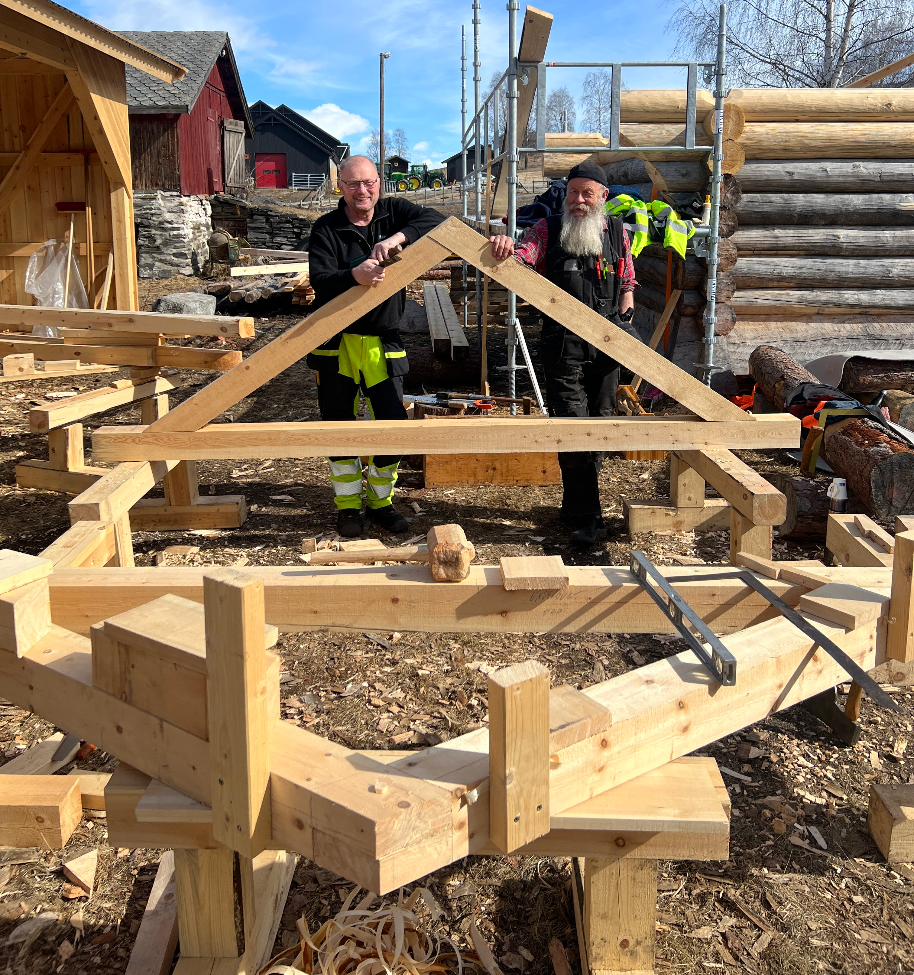 Vidare så skal det sages materialar, og så skal det bygges. Først på avbindingsplass for så og bli satt opp der det skal stå.