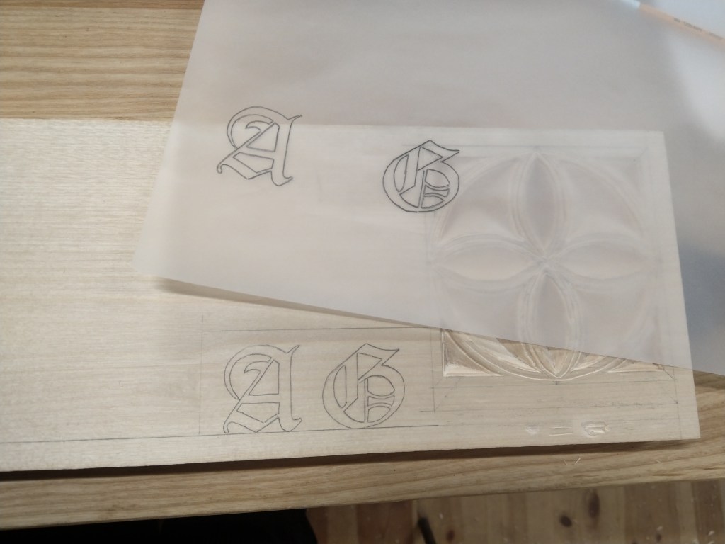 Dag 3 prøvde vi oss på en høvelkrane fra Hardangerregionen. For min egen del var overgangen fra enkel karveskudd til figurskjæring litt for brå. Resultatet ble tilfredsstillende, men ikke god nok, i mine øyne. Her er problemet nettopp mengdetrening. Ved et ukeskurs prøver man å få lært seg mest mulig forskjellige teknikker men det er begrenset hvor godt resultat man klarer å oppnå. Mens mine medstudenter prøvde seg på høvelkrane nr.2, trengte jeg en litt enklere øvelse for å ikke miste motet, jeg ville jo tross alt oppleve en form for mestringsfølelse og ikke bare frustrasjon. Dag 4 og 5 viet vi bokstavskjæring og skjæring av forskjellige pynteelementer. Å overføre skrift og liknende fra papir til tre med hjelp av kalkpapir, er en teknikk man kan ha bruk for i flere sammenheng.