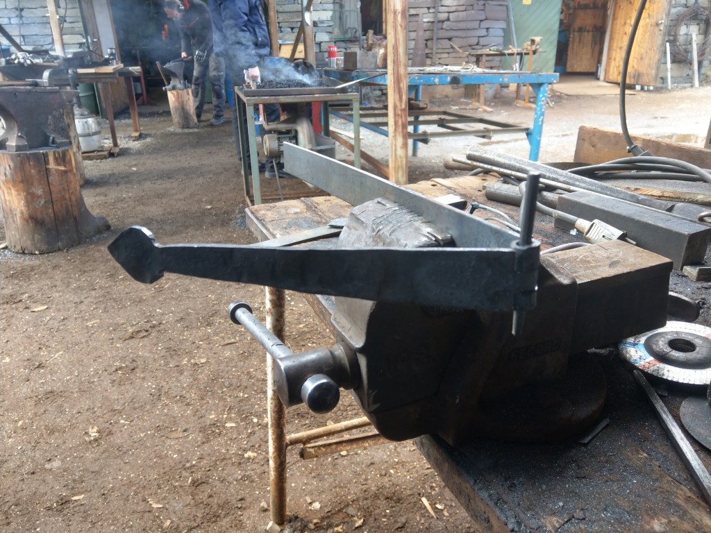 Dag 4 lagte vi en killingfot til høvelbenken. Vi lærte å stue metall og diskuterte mye om rett utforming og vinkler av selve festeverktøyet. Den siste dagen brukte vi til å ferdigstille alt. Jeg brukte tiden jeg hadde til overs til å smi noen haker som jeg kan henge grindsagene på i verkstedet, også prøvde jeg meg på spikersmiing. I etterkant må jeg si at jeg var overrasket over hvor mye ny kunnskap jeg kunne tilegne meg i løpet av denne uken. Ikke bare lærte jeg å jobbe med en helt nytt materiale, jeg fikk også en bedre forståelse for verktøyet mitt som jeg bruker daglig i jobbsammenheng. En annen positiv effekt er at jeg nå kan lage meg enkle beslag og liknende selv, noe som jeg vil ha bruk for etter uke tre med tverrfaglige kurs.