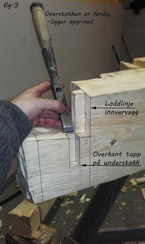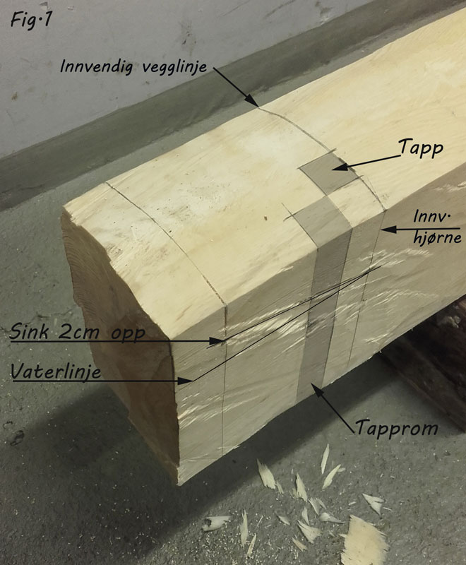 Det eine var ønsket om at mefaret (og dermed kinning på underhogget) skulle treffe omtrent der kinninga på oppsåta botna, men også slik at øverst på kinninga til stokken som låg parallelt under også traff omtrent på nemnte plass, slik at det ikkje kunne komme glipe i møtet mellom méfar og nov.