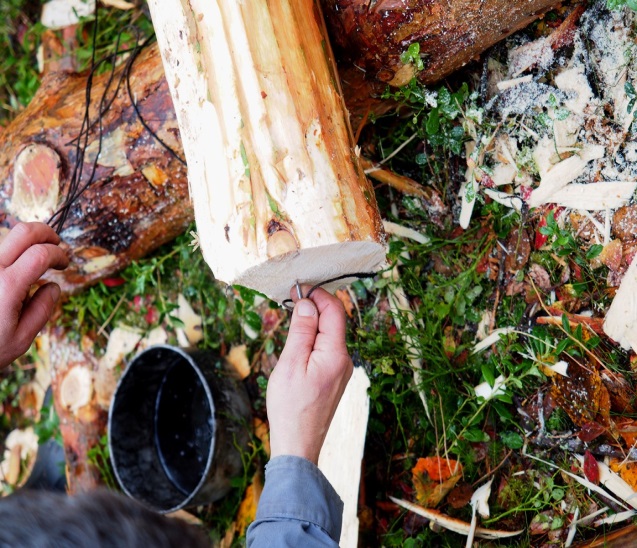Previous Image Next Image Stokken er loddet opp med loddefjøl i begge ender. En blank spiker sitter i enden av den våte sotsnora, og kan lett dyttes inn i margen for hand. Foto: Åge Emil Bergquist Lik Lastar …