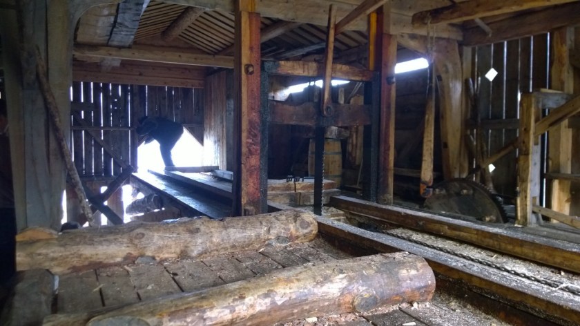 Her blir stokkane merka og hogd til for opplegg i endane.