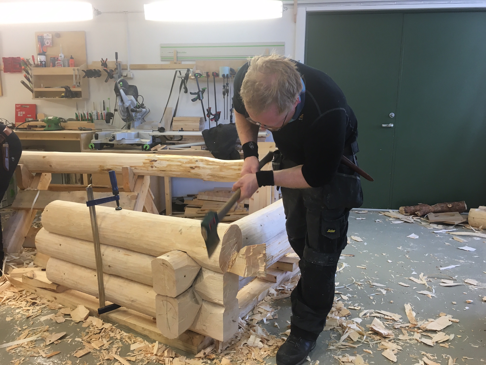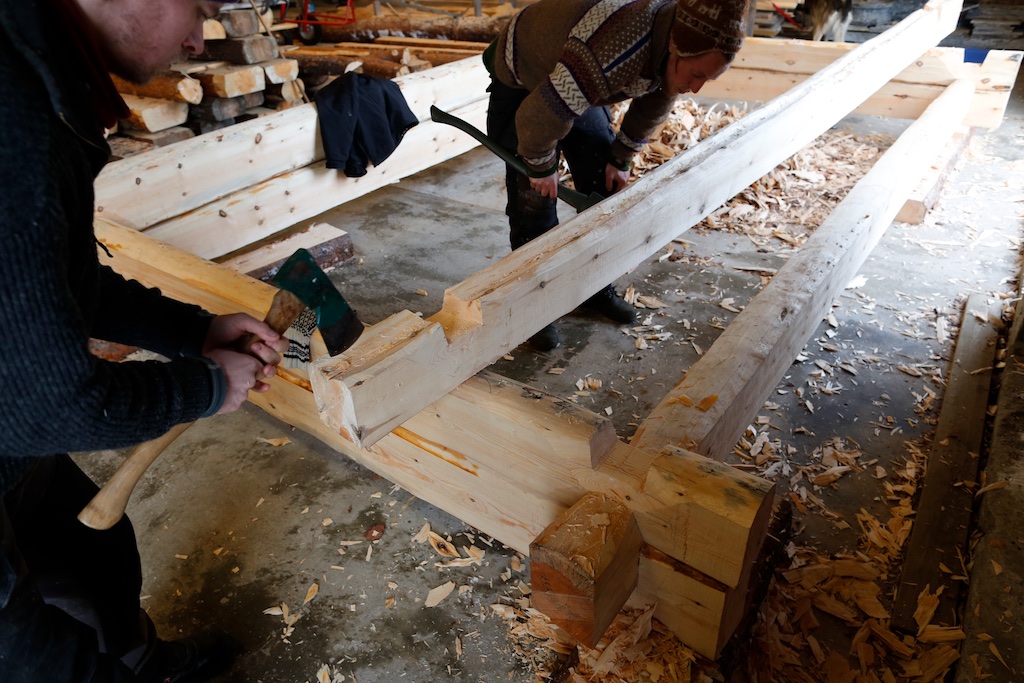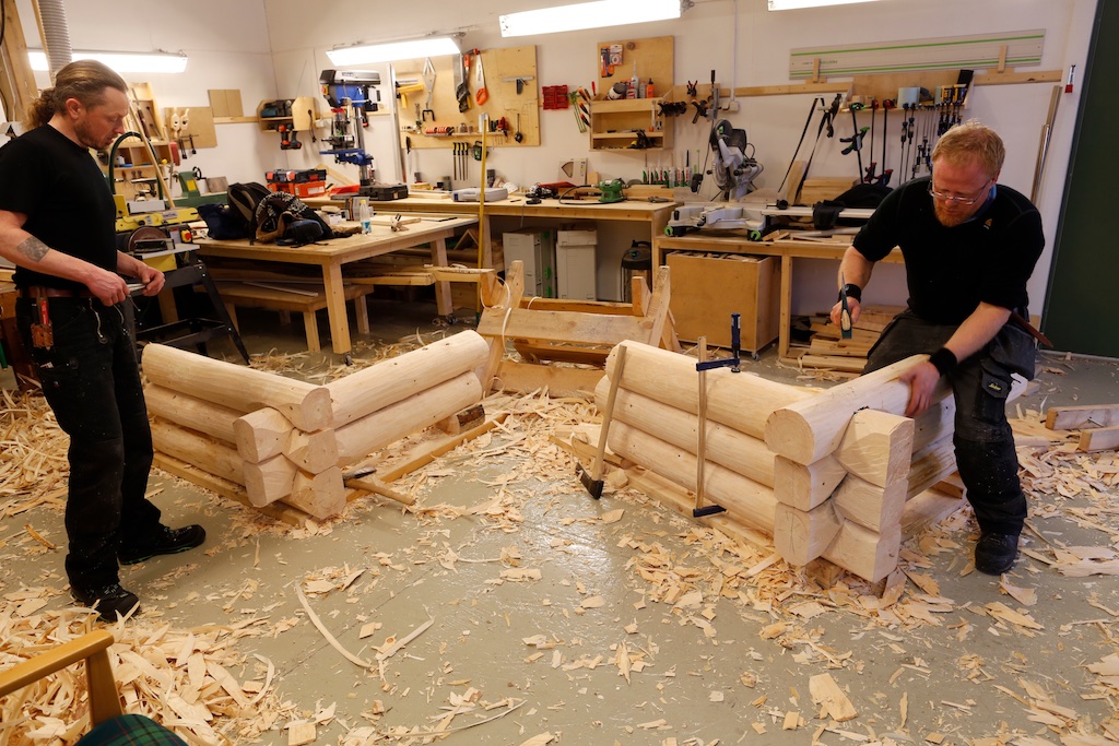 Gruppe 5 arbeidde med tømring på smia som studentgruppa i Midt-Troms har arbeidd med tidlegare. Dette er i tradisjonen som vi har lært av Arne Pedersen i Aursfjord.