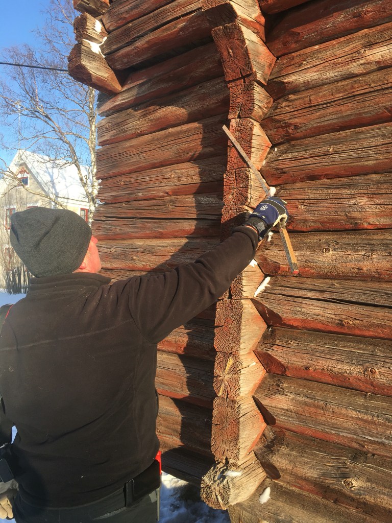 Oppmåling av nover og tømmerkvalitet. Foto: Roald Renmælmo